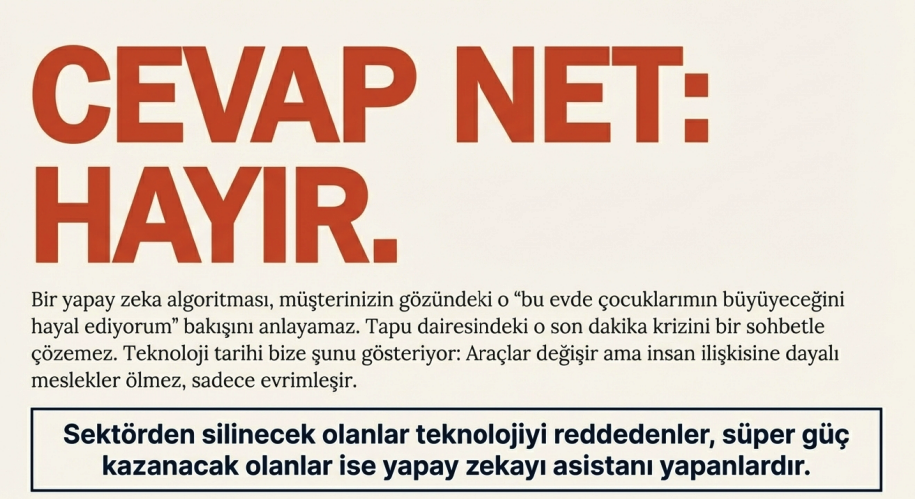 Emlak Sektörü Kuralı: Yapay zeka sizin rakibiniz değil, en çalışkan, hiç uyumayan ve maaş istemeyen asistanınızdır. Onu rakip gören kaybeder, yöneten kazanır.